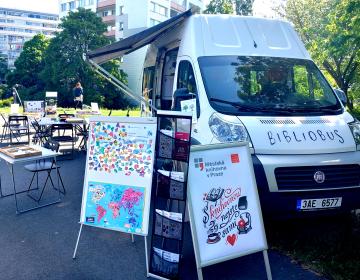 Tip! Stánky s virtuální realitou najdete vedle bibliobusu Oskar.