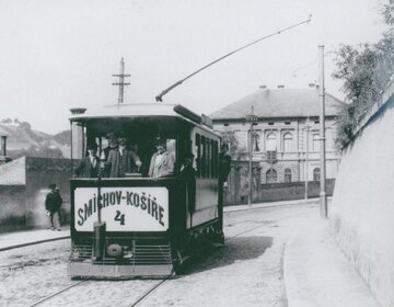 Foto v perexu: tramvaj v blízkosti Klamovky, repro z knihy „Smíchov“.