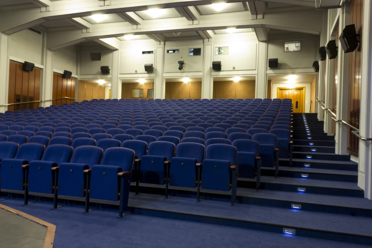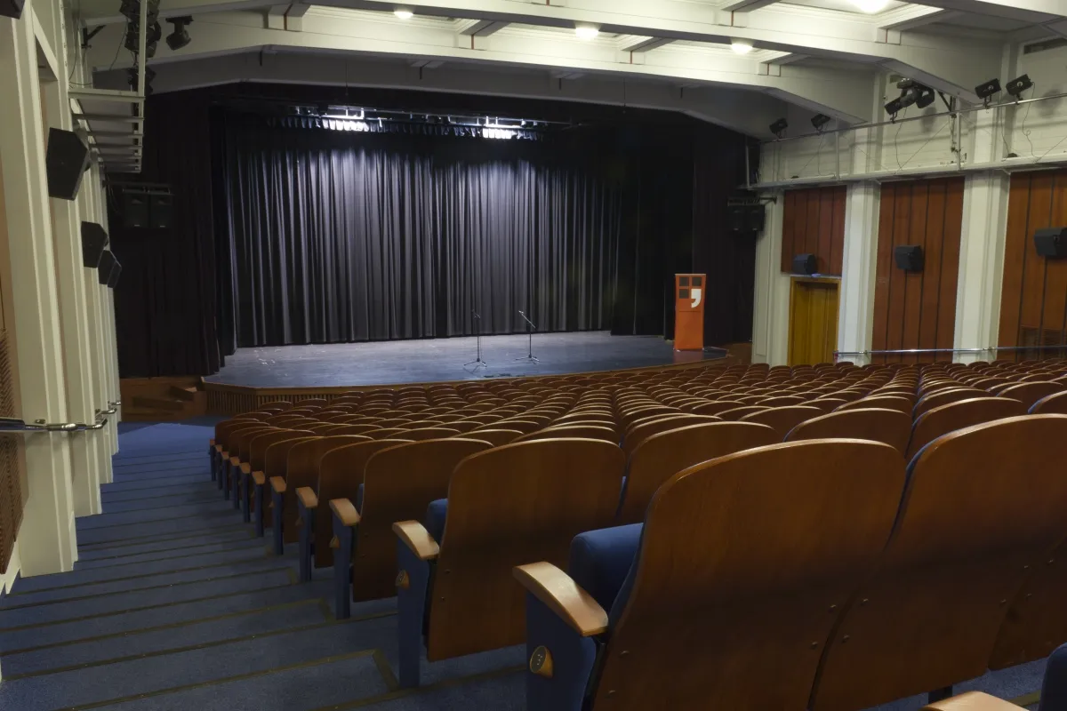 - kvalitní ozvučení sálů s možností připojení několika mikrofonů, páskový a kazetový magnetofon, CD přehrávač, minidisk, DAT deck, zvukové efekty